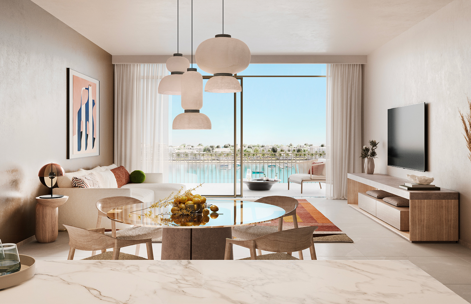 Here, every detail exudes refined luxury, and the horizon stretches endlessly. This beautiful development offers an exceptional selection of leisure and lifestyle options in the island's most prestigious and pristine location. The location presents a captivating lifestyle in a setting of modern sophistication.